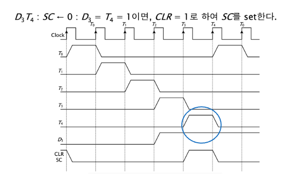 따라서 그림에서 파란색으로 동그라미 되어있는 부분에서 T_4와 D_3가 동시에 1이 되었음을 알 수 있고, 그에 따라서 Clear를 1로 만드는 동작을 수행한 모습입니다.