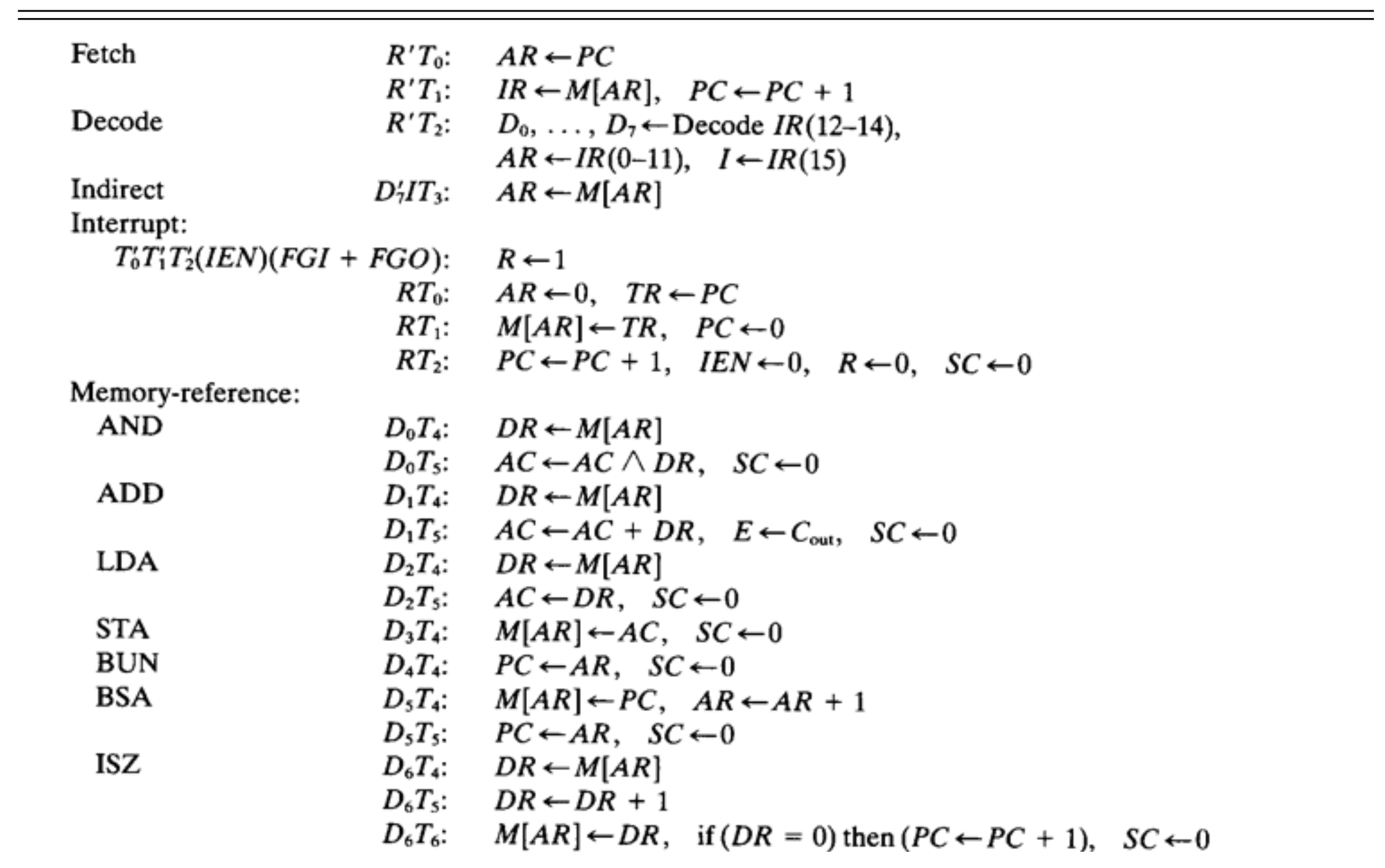 모든 Instruction은 T0에 일어납니다. 어떤 Instruction일지라도, CPU는 R의 값을 확인하고, Interrrupt의 유무를 파악합니다. 만약 Interrupt가 발생했다면, Interrupt에 대한 Instruction을 수행하기 위해, Register의 값을 다시 세팅하고 T0부터 시작합니다.
