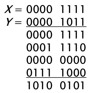 이러한 식에서, 우리는 매연산마다 Y의 가장 우측 비트만을 확인합니다. 그렇게 지금까지 진행해왔죠. 여기서는 더욱 간단하게, Y의 최하위 비트가 0인지 1인지를 판단하면 됩니다. 만약 0이라면 그냥 넘기고, 1이라면 X를 더해주는 방식이 되겠죠.
