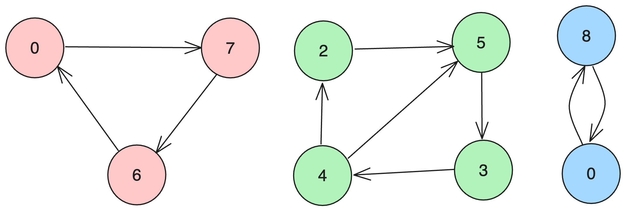 그러면 1, 7, 0이 출력될테고 이 셋은 강한 연결 성분을 갖습니다.