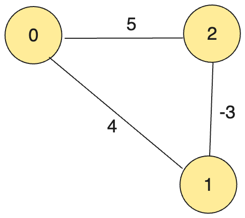 사실 0에서 1로 가는 최단거리는 0 -> 2 -> 1이여서 2가 되어야합니다. 하지만 다익스트라는 -2라는 잘못된 결과를 도출하고 있죠.