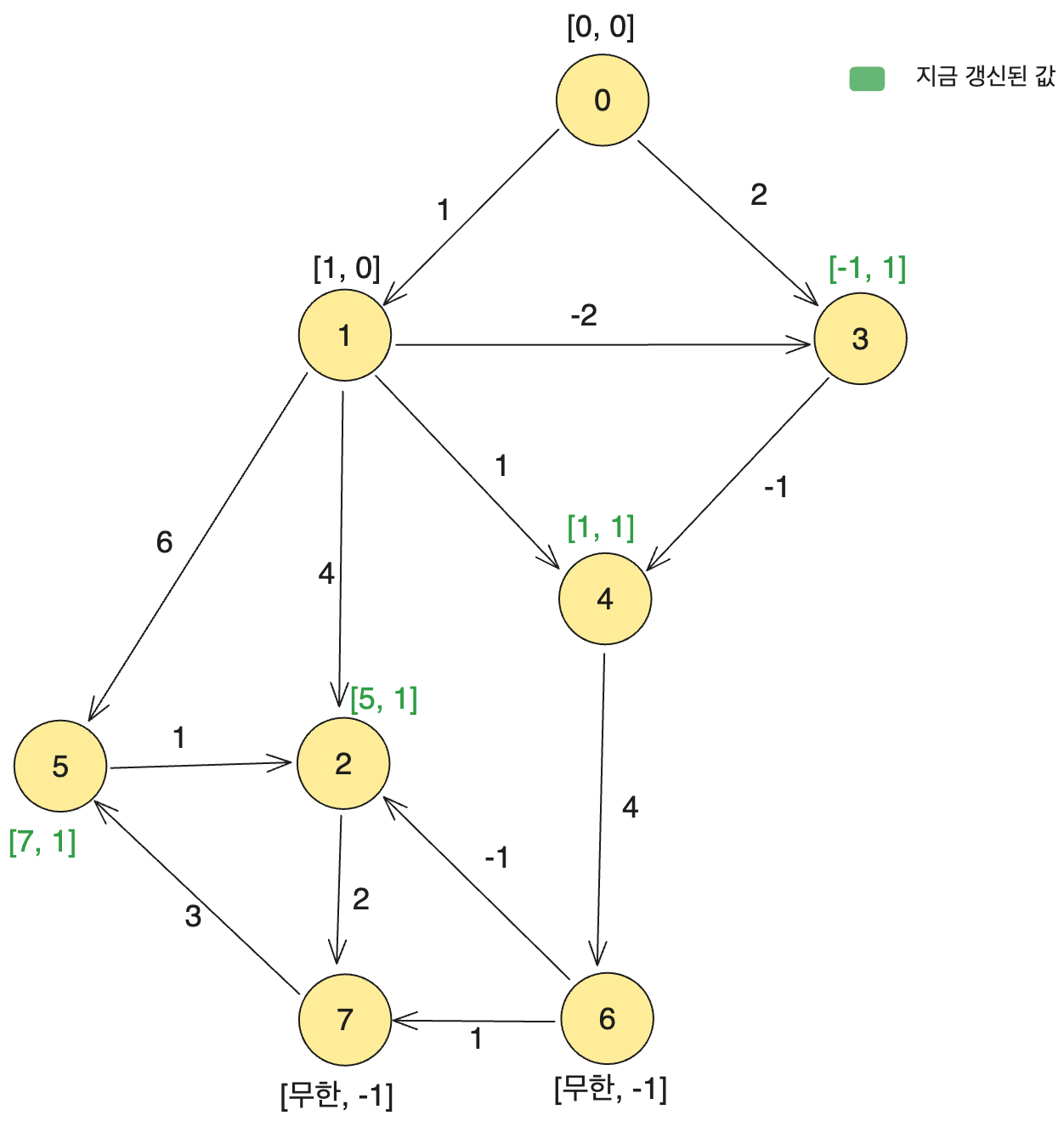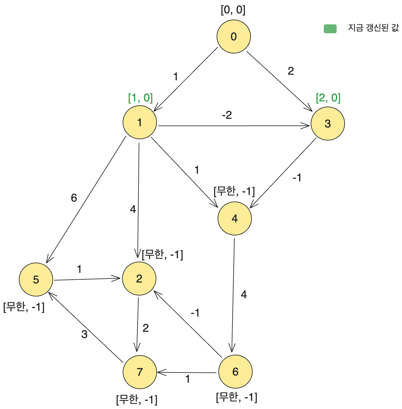 위와 같습니다. 나머지 다른 정점에서의 값은 갱신될 수 없습니다.