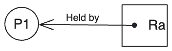 왼쪽은 프로세스 P1이 컴퓨팅 자원 R1를 사용하기 위해 request하는 것을 의미합니다.