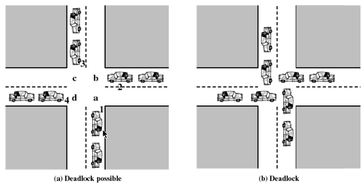 이에 확장 개념인 Deadlock은 Starvation이 영원히 지속되는 것을 의미합니다. 아래의 그림은 Deadlock을 아주 잘 나타내는 그림입니다.