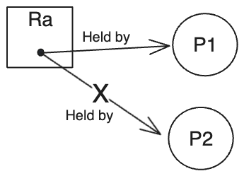 즉, 한 자원을 꼭 하나의 프로세스만이 사용할 수 있을 때를 의미합니다.