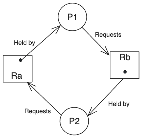 프로세스가 하나의 자원을 가지고 있고, 다른 자원을 할당받기를 기다리는 상태를 말합니다.
