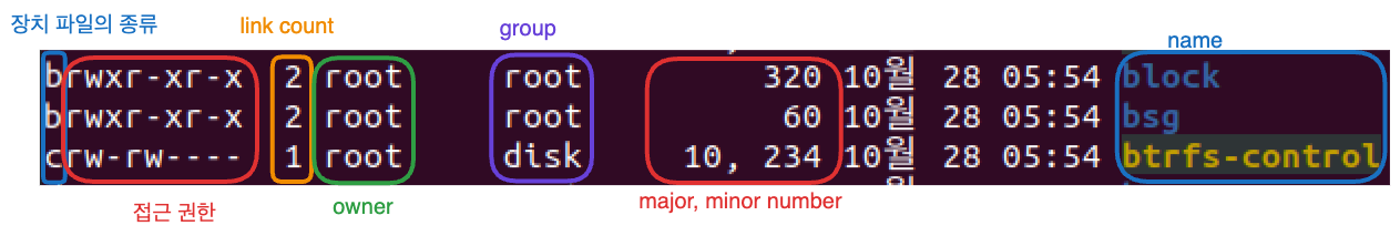 장치 파일에는 여러 종류가 있지만 여기서는 b와 c만 알아보겠습니다.