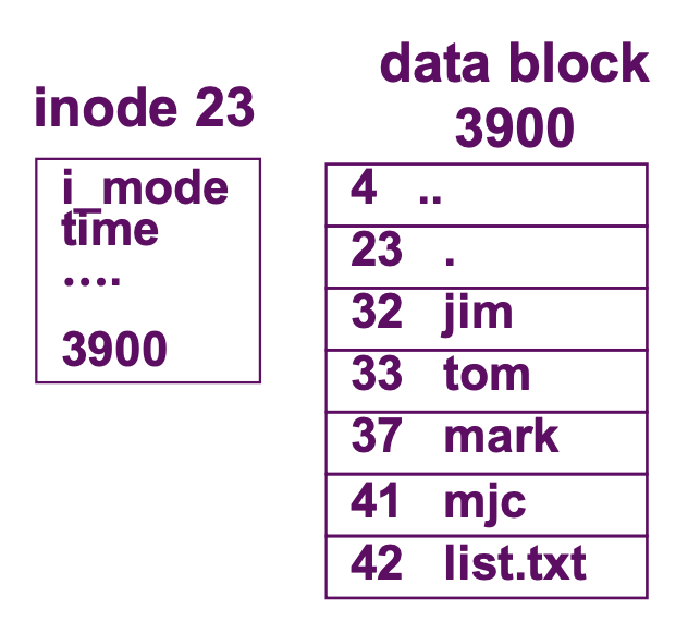 디렉토리는 파일의 속성을 저장하는 파일을 의미합니다. 정확히는 file의 이름과 FCB의 식별자만을 저장합니다.