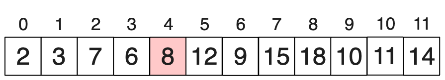 이제 우리가 찾고싶었던 피봇과 비교해봅시다. 우리가 찾고싶은 수가 7번째 수였죠?? 8은 지금 5번째(인덱스 4)니까 우리가 찾고싶은 7번째 수는 8보다 우측에 있겠네요!! 그러니까 우리는 8 기준으로 오른쪽 수열을 가져오게 됩니다.