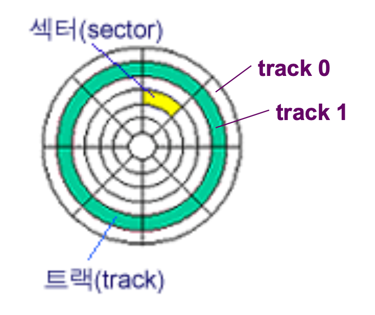 하나의 띠가 track을 의미합니다. track은 바깥에서 안쪽으로 갈수록 idx가 증가합니다.