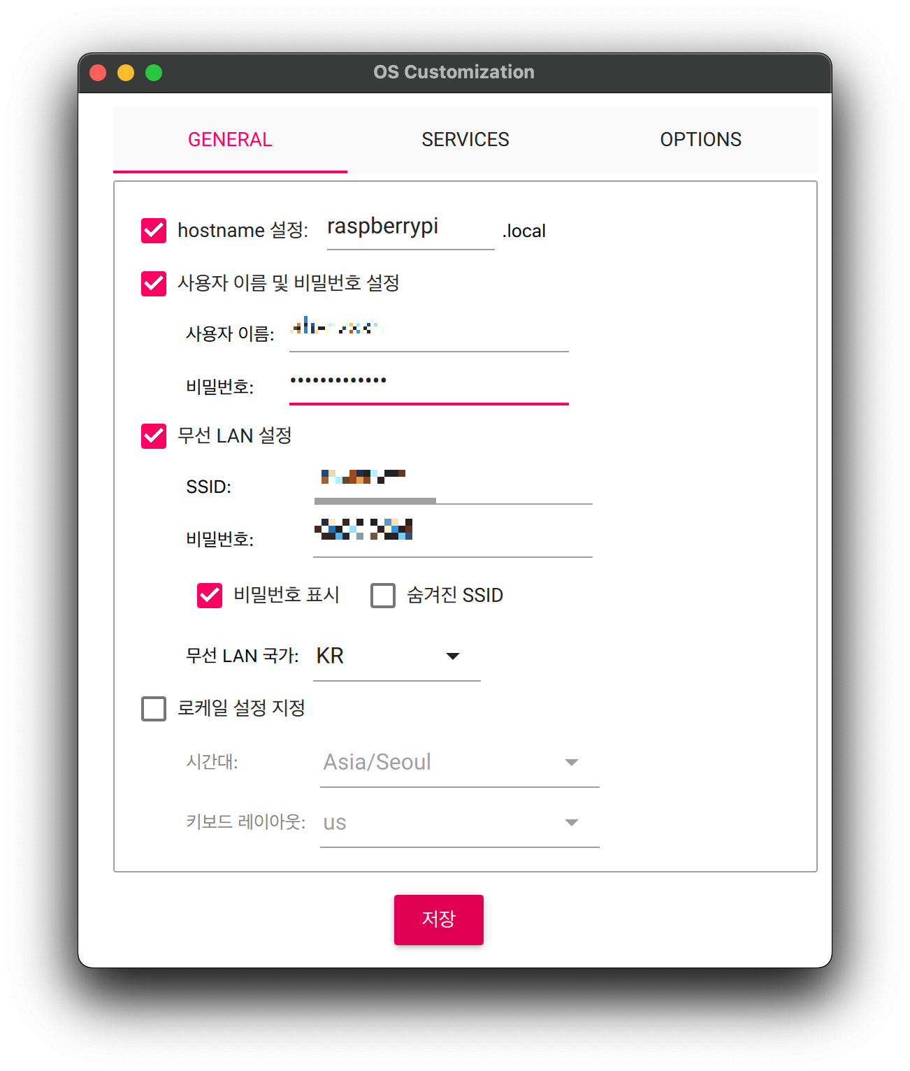 그래서 초기 세팅을 할 때, 본인 휴대폰의 핫스팟으로 되게 설정해줍니다. 그리고 국가도 KR로 설정해야합니다. 무슨 이유에서인지 KR을 설정하지 않으면 와이파이에 연결되지 않는 모습이 보였습니다. 또한 유저의 아이디나 비밀번호도 입력해줍니다.