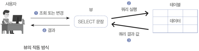 - 사용자는 뷰에 조회 또는 변경문을 사용하여 실행한다.