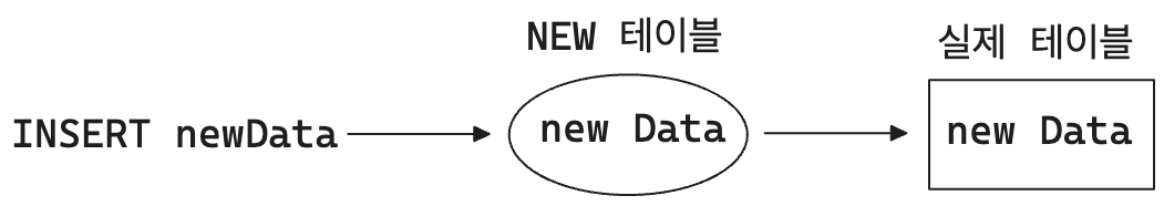 하지만 NEW 테이블은 잘 사용하지 않는다. 왜냐하면 우리가 INSERT하고자 하는 데이터는 어차피 우리가 넣고자 하는 테이블에 결국은 들어가있을테니까.