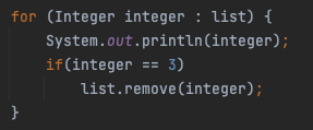 for-each에서는 컬렉션의 원소를 수정할 수 없다고 한다. 이 또한 코딩테스트에서 나도 경험했던 부분이다.