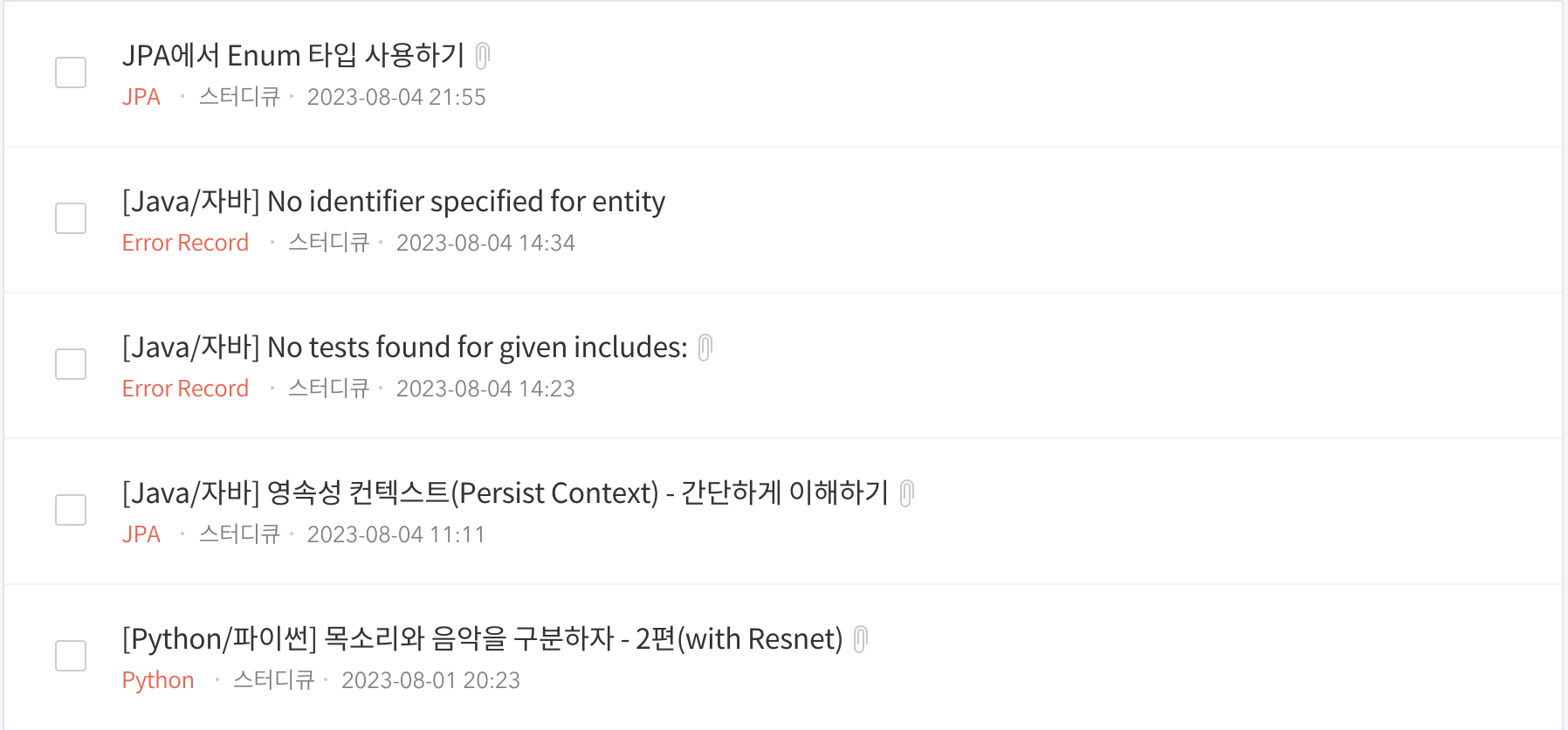 세 번째는 블로그에 글 5개 이상 남기기입니다. 이번 주는 졸업 프로젝트에 조금 더 치중했던 주차였습니다. 따라서, 졸업 프로젝트에서 다루는 주제를 토대로 작성한 글과, 프로젝트를 진행하면서 겪은 오류를 다루는 글이 주를 이루었습니다.
