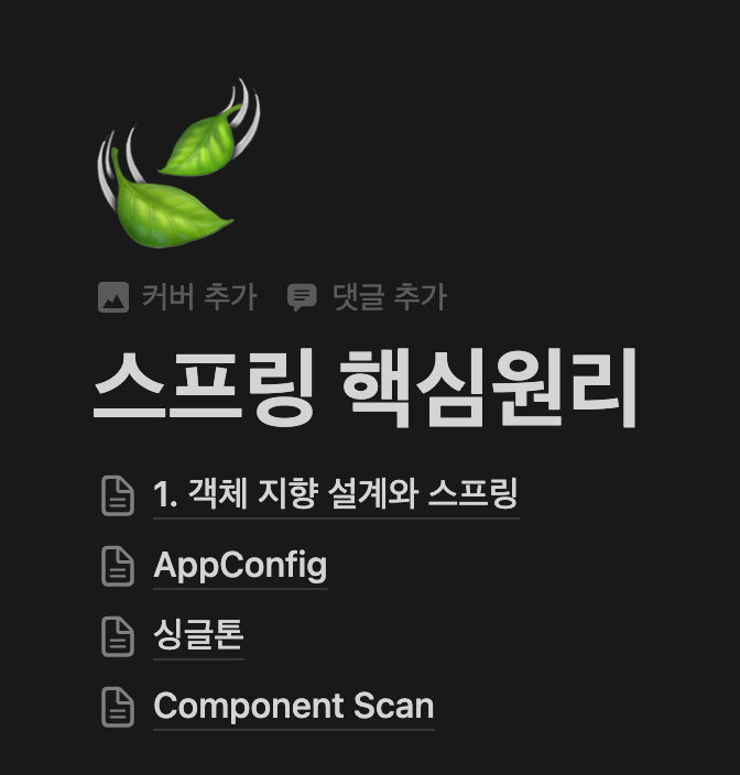 두 번째 목표는 인프런 강의를 1주일에 반절 정도를 수강하는 것이 목표였습니다. 이번 주차에서는, 많은 양임에도 불구하고 스프링 핵심 원리 - 기본편을 모두 수강하였습니다. 두 배 되는 양 정도를 더욱 빨리 완수하였습니다. 사실 처음 들은 강의는 아니였습니다. 그 때는 이해할 수 있는 것이 많이 없었고, 얻어가는 것이 많이 없다고 생각했습니다. 하지만 다시 한번 더 들을 때 조금 더 많은 내용들이 학습되었던 것 같습니다. 이러한 학습 지식들을 노션에 기록하여 나중에 다시 찾아보기 위해 정리해두었습니다.