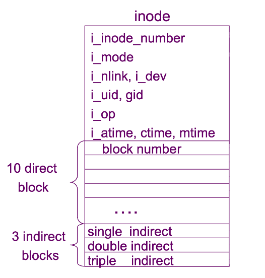 이전 글에서 다뤘던 파일 시스템의 예제 중 하나인 리눅스에 대해서 알아봅시다. Address of Data Blocks 리눅스에서는 데이터 블록 할당 기법 중에 indexed allocation method를 사용합니다. indexed allocation method는 이전 글에서 설명했으므로, 해당 글을 참고해주시기 바랍니다. 우리는 이번 글에서 조금 더 메모리 용량에 관한 부분을 알아봅시다. 보통 데이터 block은 1개당 4kb입니다. 또한 리눅스에서의 file control block의 구조를 보고 하나의 file에 사용할 수 있는 최대 용량을 알아봅시다. 리눅스의 file contro block 형태입니다. 위에 것은 무시하고 direct block와 indirect block을 살펴봅시다. 말..